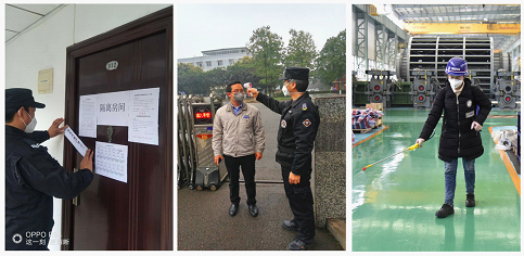 進廠體溫檢測是對公司負責,也是對員工負責的第一道關卡,要頻繁接觸所有員工。復工以來,每天早上劉剛、張華、張波、洪湖、代榆五名同志的身影就早早矗立在大門處,引導員工進廠自覺排隊測體溫、登記、發(fā)放口罩。中午時分,還要放棄午休,分組對員工進行午間測溫,不放過一絲異常。作為公司后勤管理員的劉剛同志,每日還要協(xié)助監(jiān)測隔離人員的管理工作,從正月初四輪軸轉,未曾有過一句怨言。“疫情就是命令,防控就是責任,疫情不退我不退”,這是他們堅強的承諾。