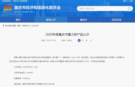 登錄網址:2020年度重慶市重大新產品公示