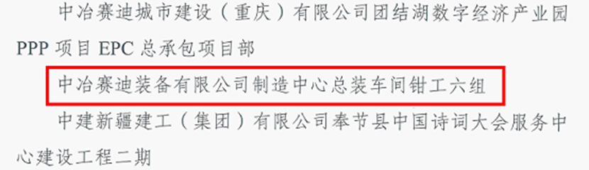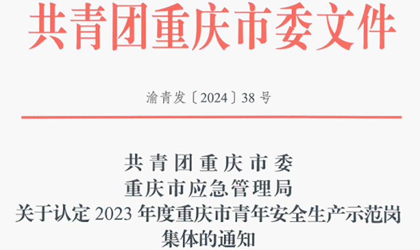 4月30日,共青團重慶市委、重慶市應急管理局聯合下發《關于認定2023年度重慶市青年安全生產示范崗集體的通知》,中冶賽迪裝備有限公司鉗工六組被認定為2023年度重慶市青年安全生產示范崗。