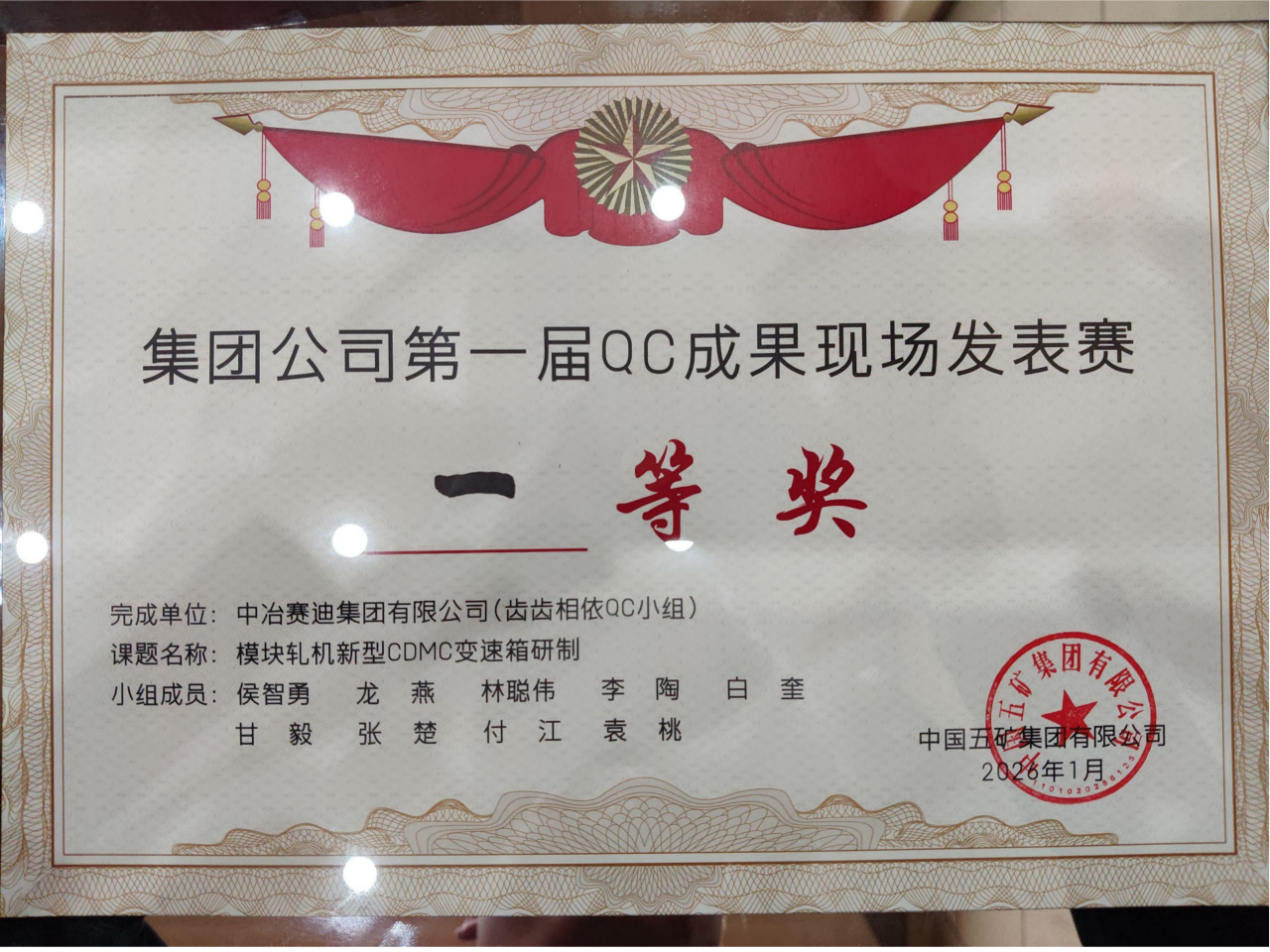 近日,中國五礦第一屆QC成果現場發表賽圓滿落幕,中冶賽迪裝備“齒齒相依” QC 小組作為中冶賽迪唯一一支參賽代表隊,與經過層層遴選、脫穎而出的30 支優秀隊伍同臺競技,憑借扎實的技術攻關、現場的優秀呈現,一路過關斬將,依托《模塊軋機新型CDMC變速箱研制》課題,成功摘得本次賽事一等獎。這是該小組繼在2025年冶金建設行業設計質量管理小組活動競賽獲得一等獎之后,再度拿下重量級一等獎榮譽,用實力續寫了質量管理與技術創新的亮眼成績。